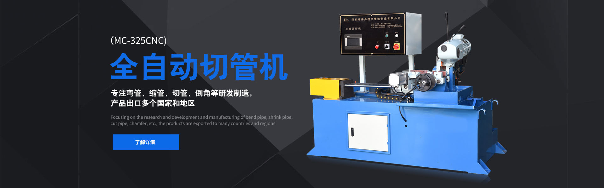 張家港宏格利機(jī)械有限公司是從事彎管機(jī)、縮管機(jī)、倒角機(jī)、切管機(jī)、去毛刺機(jī)等管材設(shè)備的生產(chǎn)企業(yè),位于中國經(jīng)濟(jì)為發(fā)達(dá)的長三角經(jīng)濟(jì)圈,全國知名的國際環(huán)花園城市-江蘇張家港。周臨滬、寧、杭、蘇、錫、常等經(jīng)濟(jì)腹地,臨江達(dá)海交通物流極為便利,為宏格利機(jī)械的發(fā)展提供了無限可能。宏格利公司具備雄厚的設(shè)計(jì)開發(fā)能力,擁有高精密的生產(chǎn)檢測設(shè)備,在多年生產(chǎn)基礎(chǔ)上,精益求精,不斷改進(jìn)創(chuàng)新,先后研制開發(fā)了微電腦控制彎管機(jī)、系列管端成型機(jī)、系列金屬圓據(jù)機(jī)、鉚接機(jī)、磨齒機(jī)等自動(dòng)化管材加工機(jī)械。為汽車、摩托車、體育健身器材、鋼管家具、旅游休閑用品、水暖衛(wèi)浴等行業(yè)的金屬管類制品的加工提供了成套的機(jī)械設(shè)備,并替代了進(jìn)口。 公司建立全國性的售前、售后營銷服務(wù)體系,悉心為客戶服務(wù),始終提供高品質(zhì)效率高的產(chǎn)品及迅捷滿意的服務(wù)。公司恪守“科技創(chuàng)新,品質(zhì)為尊,超越服務(wù)”為企業(yè)理念,期待與海內(nèi)外客戶攜手同心,共創(chuàng)錦繡前程。